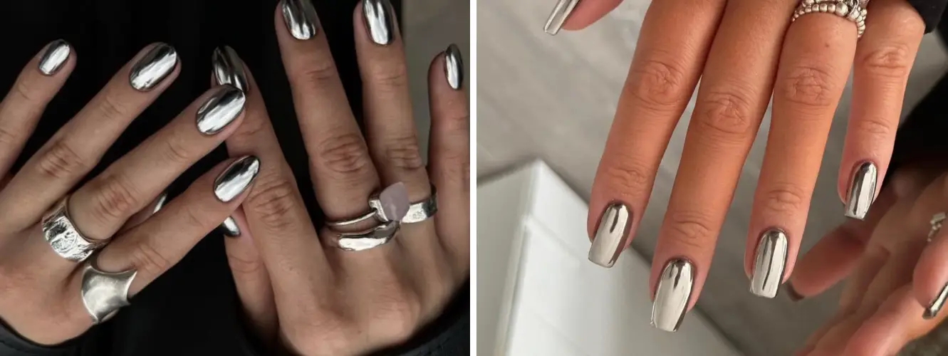 Хромований дизайн — це той манікюр, який виглядає дорого. Він нагадує відполірований метал. Цей ефект досягається за рахунок нанесення на покриття спеціальної втирки. Щоб такий дизайн виглядав розкішно, варто гарно вирівняти нігтьову пластину. Також краще віддати перевагу стриманим відтінкам.