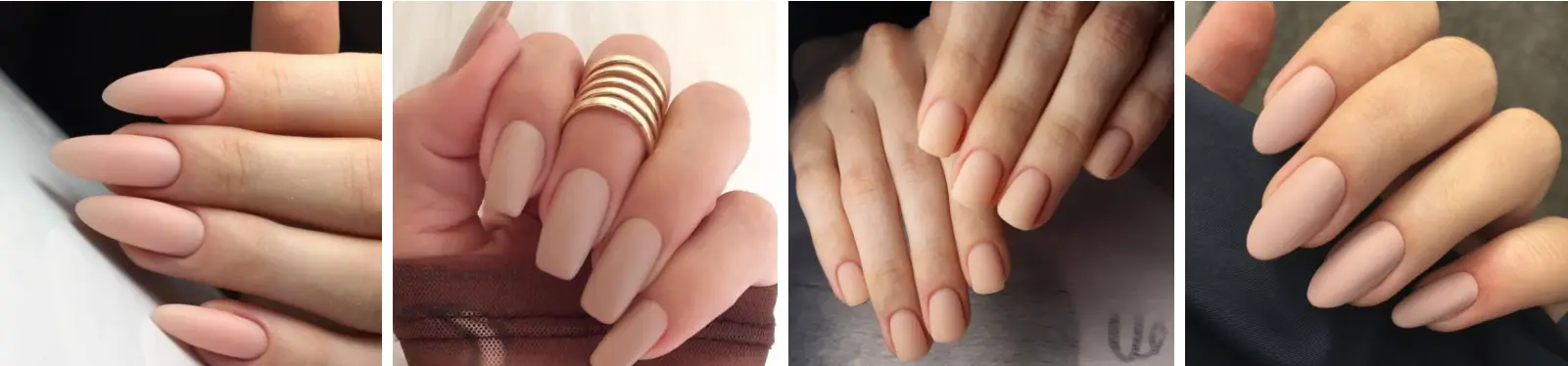 Бежеве матове покриття — це класичний манікюр, який виглядає дорого, стильно та розкішно, незалежно від модних тенденцій. Його особливість — це оксамитова текстура без глянцевого блиску. Відтінки бежевого варіюються від світлого кремового до глибокого карамельного, завдяки цьому можна обрати ідеальний тон під колір шкіри. Додатково таке покриття можна прикрасити мінімалістичним дизайном — тонкими золотими лініями або ледь помітним омбре.