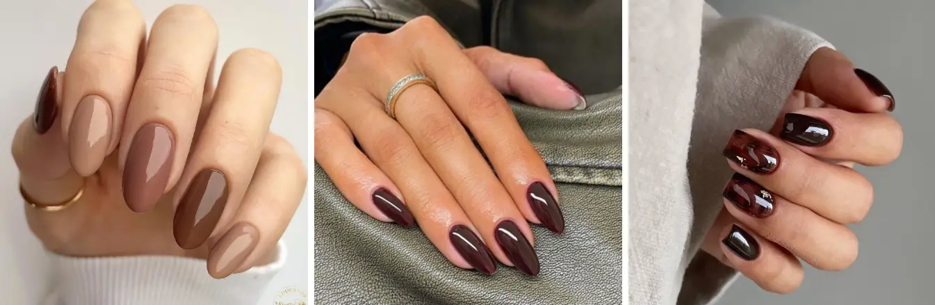 - Гель-лак шоколадного кольору — теплий коричневий відтінок.