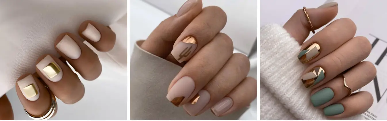 Металевий дизайн — це той манікюр, який виглядає дорого, незвичайно та притягує погляди. Сріблясті, золоті чи бронзові відтінки створюють враження, ніби ваші нігті зроблені з дорогоцінного металу. Цей дизайн особливо ефектний у поєднанні з глянцевим фінішем.