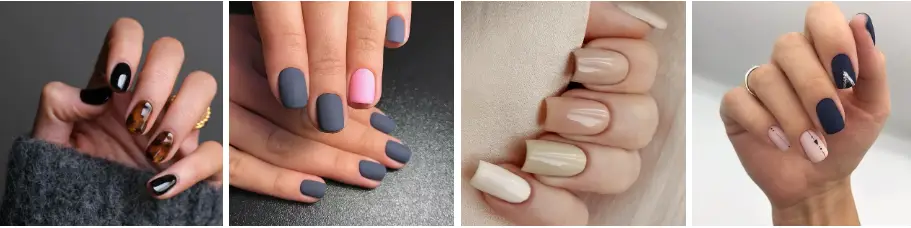 Any manicure options are suitable for short nails. It can be a classic monochromatic coating in neutral or bright shades, a jacket, as well as minimalist designs with geometric elements or delicate patterns.