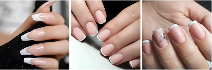 - Классический френч маникюр - прозрачная или розовая база с белыми кончиками.