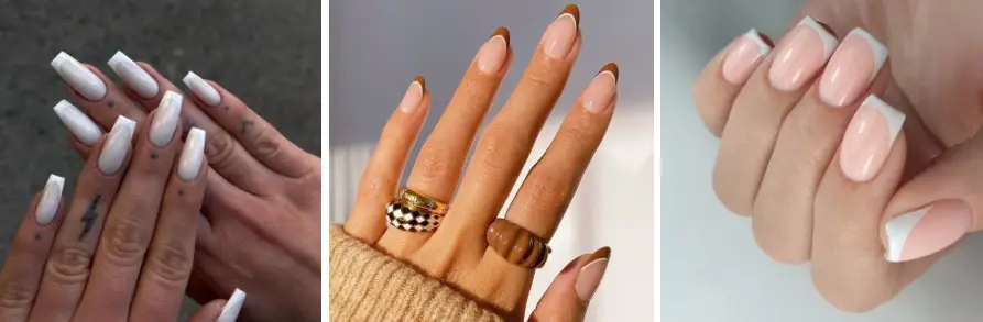 Современный френч маникюр сочетает в себе множество креативных идей, которые подходят для любого случая - от повседневного образа до праздничных и свадебных дизайнов. Выбор варианта зависит от длины и формы ногтей, оттенков покрытия и дополнительных украшений. Самые популярные идеи французского маникюра выглядеть следующим образом.